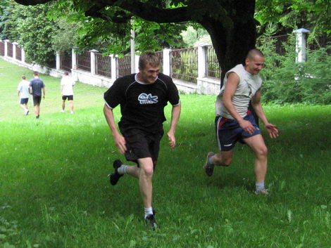 We wtorek hokeiści nie trenowali na Gorcach lecz przy Gimnazjum nr 1. Trening składał się z dwóch części. W pierwszej zawodnicy biegli pod górkę po siedem razy w każdej z trzech serii. – To typowy trening szybkościowo –siłowy – informuje drugi trener „Szarotek”, Marek Ziętara.