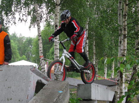 - Miałem do wyboru, albo wystartować w Elite, albo uczestniczyć w seniorach – mówi Filip Mrugała. – Wybrałem Elite, ale wtedy jeszcze pogoda była słoneczna. Podczas pokonywania pierwszej sekcji rozpadało się. Większość jeźdźców przepisała się do kategorii Senior, a ja… postanowiłem się sprawdzić w ekstremalnych warunkach. Nigdy się nie poddaję. Na pierwszej pętli problemy miałem tylko na sekcji z oponami, pod koniec na prostym odcinku zaliczyłem „glebę”. Pozostałe przejechałem bezbłędnie. Mieliśmy do pokonania trzy okrążenia, na każdej z nich usytuowanych było pięć odcinków jazdy obserwowanej. Na drugim okrążeniu był odcinek zbudowany z pniaka o wysokości 2,5 metra. Całkowicie nieprzejezdny w warunkach jakie panowały. Spadłem na główkę, a pedał wbił mi się w udo. Polała się krew, ale po drugiej pętli wysforowałem się na drugie miejsce. Niestety trzecie okrążenie rozpocząłem bardzo pechowo. Poślizgnąłem się na kamieniu i spadając uderzyłem plecami o kolejny kamień, który leżał obok odcinka. Przy okazji rozwaliłem tylny hamulec, którego nie zdołałem naprawić. Kontynuowałem zawody, ale bez hamulca nie dało się skutecznie pokonywać odcinki, szczególnie dwa ostanie. Łapałem punkty karne. Na dwóch ostatnich, które wcześniej pokonałem na zero, musiałem się poddać.