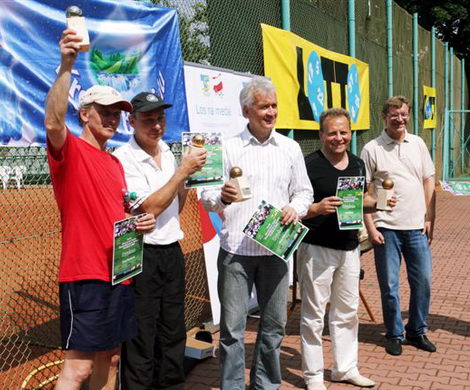 Janusz Chorzępa (drugi od lewej) w gronie zwycięzców mistrzostw Polski dziennikarzy w tenisie ziemnym