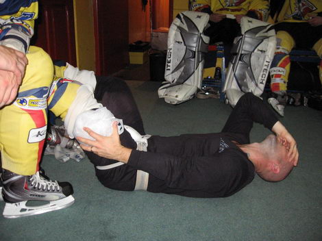 Mając tak długą ławkę szkoleniowcy nie mają bólu głowy, gdy któryś z zawodników wyskoczy z powodu kontuzji. Tak jak choćby dzisiaj na porannym treningu. Daniel Galant uderzony został w szczękę krążkiem i…- Jest podejrzenie, że jest złamana – mówi z wielkim trudem nowotarski obrońca. – Szczegółowa diagnoza będzie w poniedziałek.