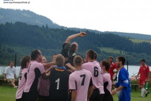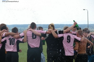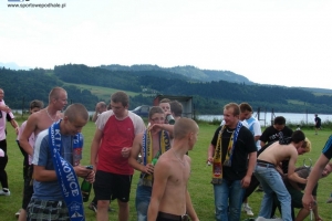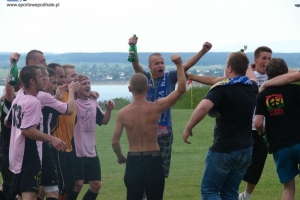 AKTUALIZACJA ZDJĘĆ: Rozgrywki w klasie B dobiegły końca. Piłkarze z Chabówki już dużo wcześniej kąpali się w bąbelkach szampana. Awans do klasy A to historyczny sukces. Za to w grupie wschodniej walka trwała do ostatniej kolejki. Zapora rywalizowała w Przełęczą. Łopuszanie w ostatniej kolejce polegli 0:4 piłkarzom za miedzy (Dunajec), a ponieważ kluszkowianie pokonali Grom 5:1, to nad zaporą wybuchły korki od szampana. Kluszkowianie po latach wracają w szeregi A-klasowców.