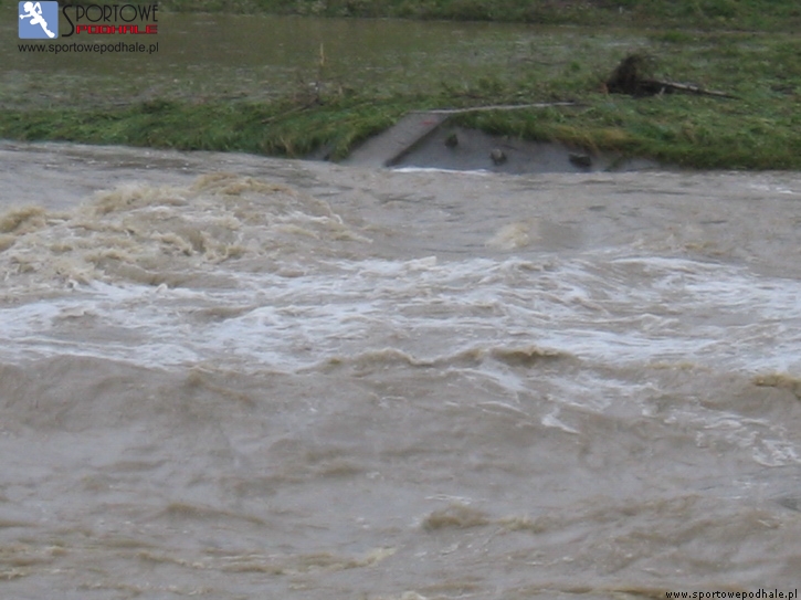 Od południa trudno było się dostać do Miejskiej Hali Lodowej. Wokół było pełno wody. Jedynie od strony kładki na Czarnym Dunajcu, przez Pub Hokejowy.