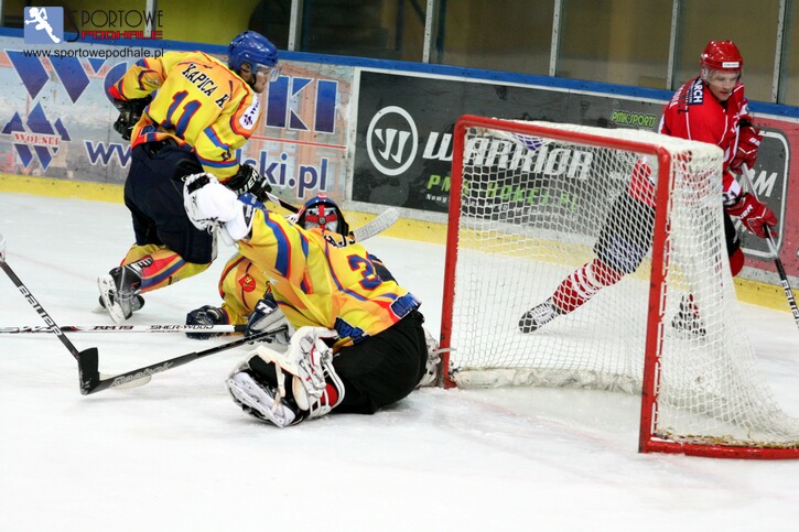 Już pierwsza interwencja Rajskiego w 28 sekundzie polegała na wyciągnięciu krążka z siatki. „Szarotki” rozpoczęły spotkanie jakby miały respekt przed liderem. Pozwoliły mu dowoli hasać w swojej strefie obronnej.