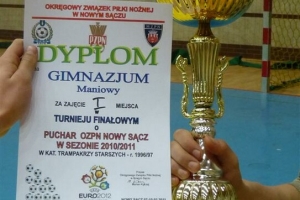 Wczorajszego dnia na hali widowiskowo-sportowej MOSiR w Nowym Sączu odbył się finał turnieju o Puchar Prezesa OZPN. Trampkarze Lubania Maniowy którzy zagrali jako Gimnazjum Maniowy zajęli w tym turnieju pierwsze miejsce, dzięki czemu awansowali do finału wojewódzkiego o Puchar Prezesa MZPN ! Druga nasza drużyna z Podhala , APGZ Szaflary uplasowała się na czwartym miejscu.