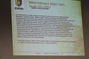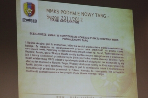 - Wystąpię do rady z projektem przyznania pół miliona złotych na pierwszą drużynę MMKS Podhale, z zachowaniem dotychczasowej dotacji dla trenerów. Czy utrzyma pan zespół? Ten projekt osobiście firmuję i oczekuję zdecydowanej odpowiedzi– zwrócił się burmistrz Marek Fryźlewicz do prezesa MMKS Podhale, Mirosława Mrugały, który zwołał debatę dla ratowania hokeja w Nowym Targu. – Tak – odpowiedział prezes. Miało nie być ”ale” (zastrzegł sobie burmistrz), ale prezes wyszeptał: - Nie wiem na jakim poziomie.