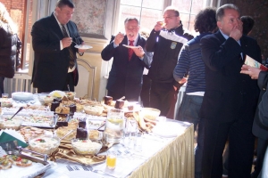 Środa była dniem wolnym od gier dla drużyn biorących udział w hokejowych MŚ Dywizji 1. Uczestnicy czempionatu w różny sposób wykorzystali piękną, słoneczną pogodę. W samo południe prezydent Torunia – Michał Zaleski – zaprosił VIP-ów na Rynek Staromiejski do ekskluzywnego Dworu Artusa . Międzynarodową Federację Hokeja na Lodzie reprezentował Słoweniec Ernest Aljancić.