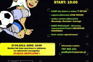 OSTATNIE WOLNE MIEJSCA: Już niedługo, bo 27 kwietnia w Jabłonce, odbędzie się piłkarski camp dla dzieci prowadzony metodą Coerver Coaching, która uznawana jest na świecie za najlepszą metodę szkolenia piłkarskich umiejętności.