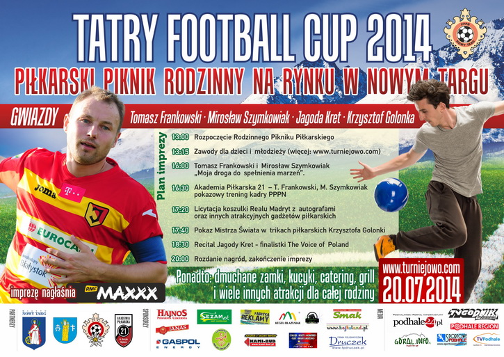 W dniach 19-20 lipca zostanie rozegrana druga edycja piłkarskiego turnieju TATRY FOOTBALL CUP. W tym roku turniej odbywać się będzie w czterech różnych kategoriach: mężczyźni open, kobiety open, młodzież u-16 oraz STREET SOCCER- piłka uliczna. Mecze rozgrywane będą na wszystkich orlikach w Nowym Targu, a także w Ludźmierzu, Waksmundzie i Łopusznej.