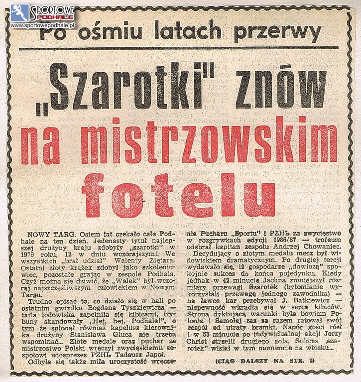 Oj to były lata – mogą westchnąć kibice hokejowej bytomskiej Polonii. Ich pupile w latach 80 –tych cztery razy zasiadali na mistrzowskim tronie. Kolejne dwa tytuły mistrza kraju zdobyli w 1990 i 1991. Teraz żyją w zupełnie innej rzeczywistości i jutro zmierzą się z Podhalem.