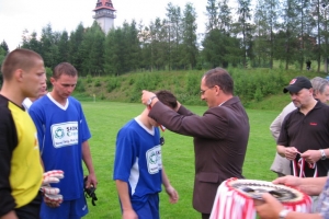 Orawa mistrzem Podhala! Orawa najlepsza jest! – te słowa niosły się na całe Maniowy, które były organizatorem Pucharu Podhala, a wyśpiewywał je tylko jeden kibic, o potężnym głosie. Do taktu przygrywał sobie… dzwonkiem.