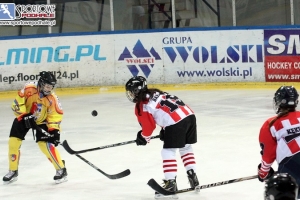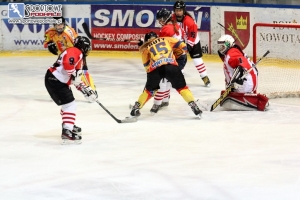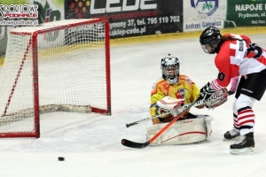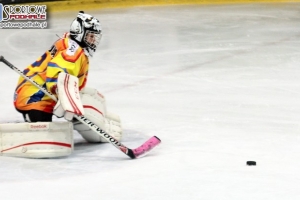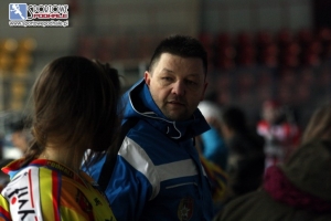 - Nie odpuszczać! Pamiętać o tyłach! – mobilizował zawodniczki trener Zbigniew Podlipni przed trzecią tercją. Przez cały mecz buzia mu się nie zamykała od instruktarzu. Jego dziewczęta, występujące w hokejowej ekstraklasie (grupa B), jeszcze takiego wymagają.