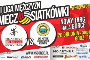 Już w najbliższą sobotę (20.12.2014) o godzinie 18:00 w hali Gorce rozegrany zostanie kolejny mecz w ramach III ligi siatkówki mężczyzn. Tym razem przeciwnikiem KS Gorce McArthur Nowy Targ będzie drużyna UKS Hutnik Dobry Wynik Kraków.