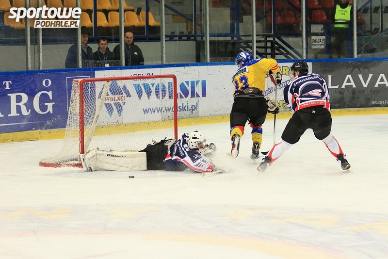 AKTUALIZACJA (zdjęcia): - Pierwszy raz trener desygnował mnie do pierwszej piątki. Miałem za zadanie zasłaniać bramkarza, a to ze względu na moją posturę. Udało się, po strzale Haverinena zmieniłem lot krążka, bramkarz odbił ”gumę”, a ja dobiłem – powiedział Sebastian Łabuz.