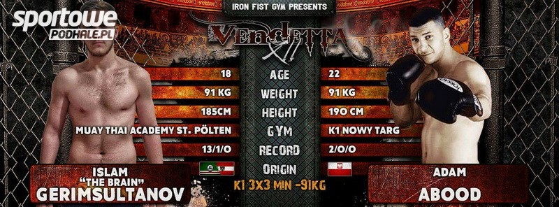 Na gali „Vendetta VIII” w Wiedniu organizowanej przez federację IRON FIST GYM nowotarżanin Adam Abood Al Hassani,walcząc w formule K1, pokonał po ciosie na wątrobę Turka Ismela Gerimsultanova.