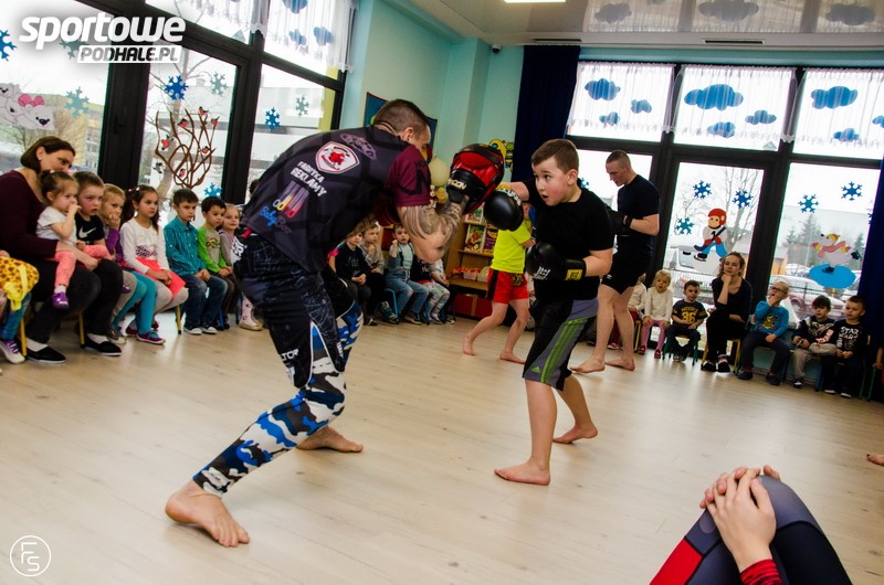 Nowotarski Klub Sportów Walki odwiedził przedszkole „Wesoły Korowód”. Zawodnicy zaprezentowali techniki walk. Dzieciaki i opiekunowie podjęli rzuconą przez Wojciecha Hołego i spółkę rękawice i spróbowali swoich sił.