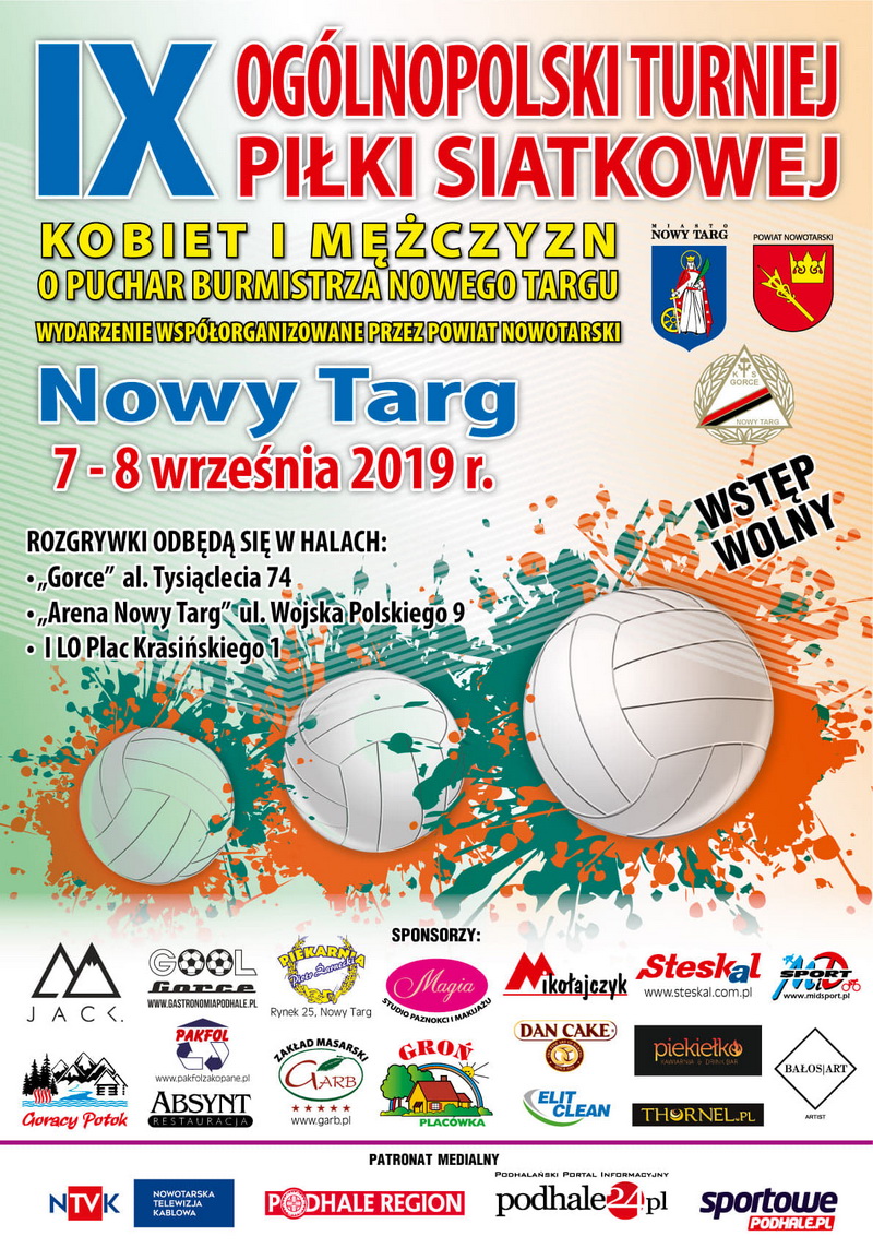 Już w najbliższy weekend (7-8 września 2019 roku) odbędzie się IX Ogólnopolski Turniej Piłki Siatkowej Kobiet i Mężczyzn o Puchar Burmistrza Miasta Nowy Targ