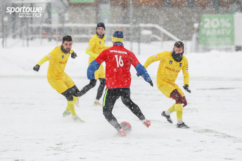 Siódmy mecz kontrolny nowotarżan przed rundą wiosenną rozgrywany był w trudnych warunkach podczas gęsto padającego śniegu, na mocno zaśnieżonym boisku.