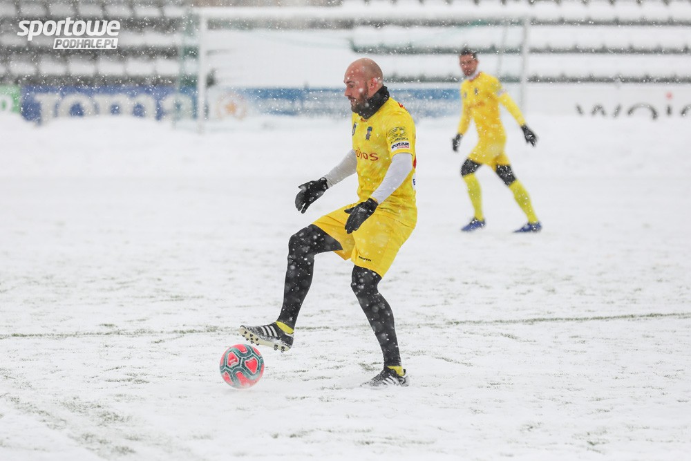 Siódmy mecz kontrolny nowotarżan przed rundą wiosenną rozgrywany był w trudnych warunkach podczas gęsto padającego śniegu, na mocno zaśnieżonym boisku.