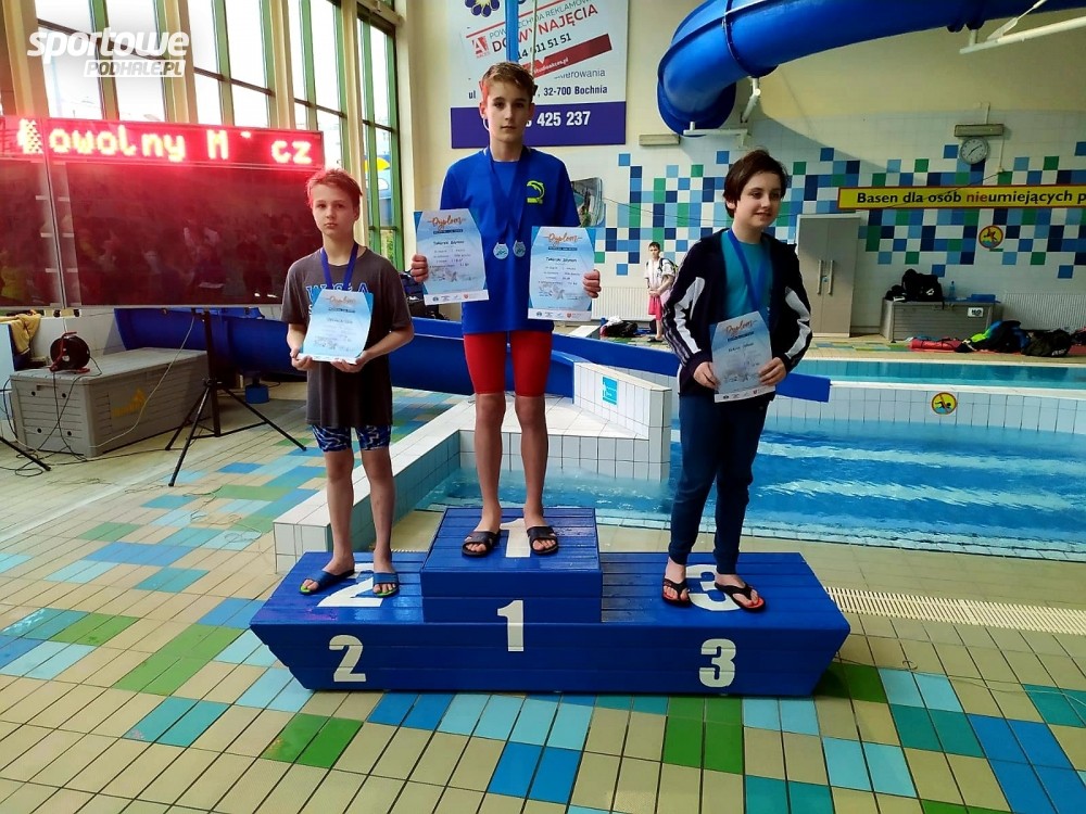 10 i 11-latkowie - pływacy nowotarskiego klubu Delfin aż 16 razy stawali na podium Małopolskiej Ligi Dzieci, która została rozegrana w Bochni w minioną niedzielę.