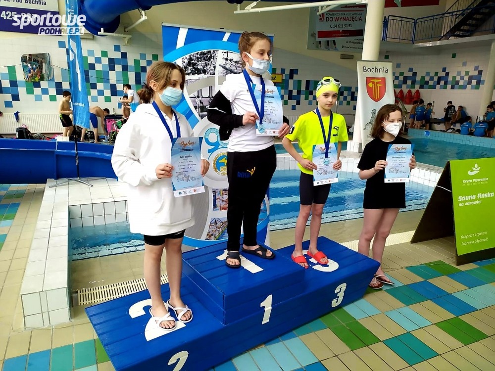 10 i 11-latkowie - pływacy nowotarskiego klubu Delfin aż 16 razy stawali na podium Małopolskiej Ligi Dzieci, która została rozegrana w Bochni w minioną niedzielę.