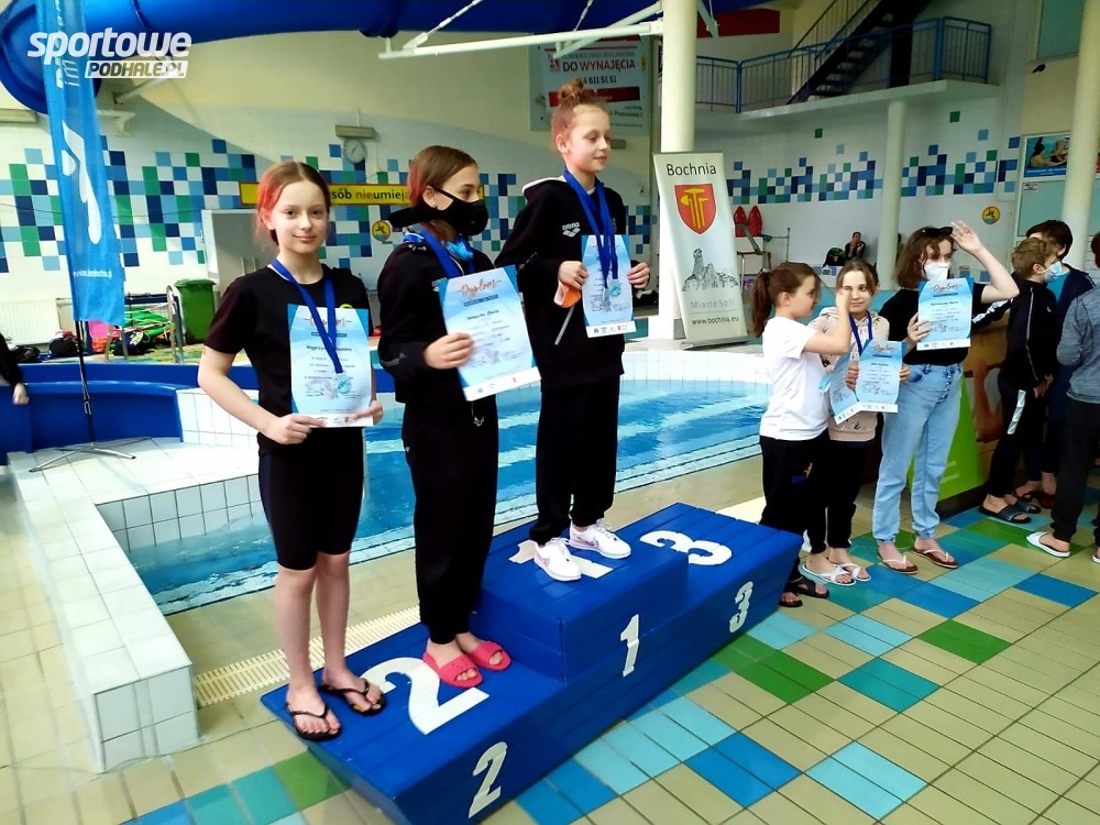 10 i 11-latkowie - pływacy nowotarskiego klubu Delfin aż 16 razy stawali na podium Małopolskiej Ligi Dzieci, która została rozegrana w Bochni w minioną niedzielę.