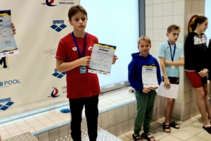 W Małopolskiej Lidze Dzieci, która odbyła się dzisiaj na pływalni w Oświęcimiu, zawodnicy Klubu Uczniowskiego Delfin z Nowego Targu zdobywają 17 medali i zajmują 4 miejsce w klasyfikacji medalowej