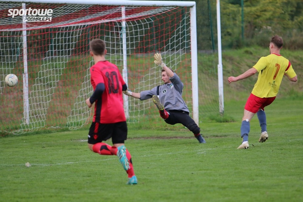 Pierwszy mecz niedzielny A Klasy przyniósł sześć goli. Po dwa gole zdobyli Franczak i Sikora.