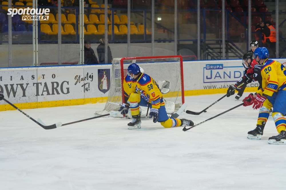 Na nowotarskim lodowisku doszło do konfrontacji dwóch najsłabszych zespołów lidze. Zespołów z kłopotami finansowymi i kadrowymi.