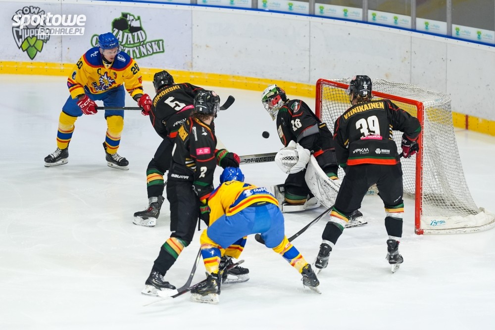 „Szarotki” nie były faworytem w konfrontacji z liderem, który na własnym lodzie rozgromił je w rekordowym stosunku 10:0.