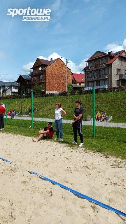 Na boisku do piłki siatkowej w Krościenku nad Dunajcem odbyły się Igrzyst=ka Młodzieży Szkolnej Ośrodka Pieniny w siatkówce plażowej chłopców, organizowane przez Powiatowe Centrum Kultury.