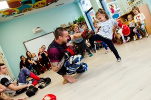 Nowotarski Klub Sportów Walki odwiedził przedszkole „Wesoły Korowód”. Zawodnicy zaprezentowali techniki walk. Dzieciaki i opiekunowie podjęli rzuconą przez Wojciecha Hołego i spółkę rękawice i spróbowali swoich sił.